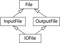 이렇게 되면, IOFile 클래스는 File 클래스의 경로 갯수 만큼의 File 객체를 가지게 된다. 가상 상속(virtual inheritance) 를 사용하면, 위와 같은 데이터 멤버의 중복 생성을 막을 수 있다.