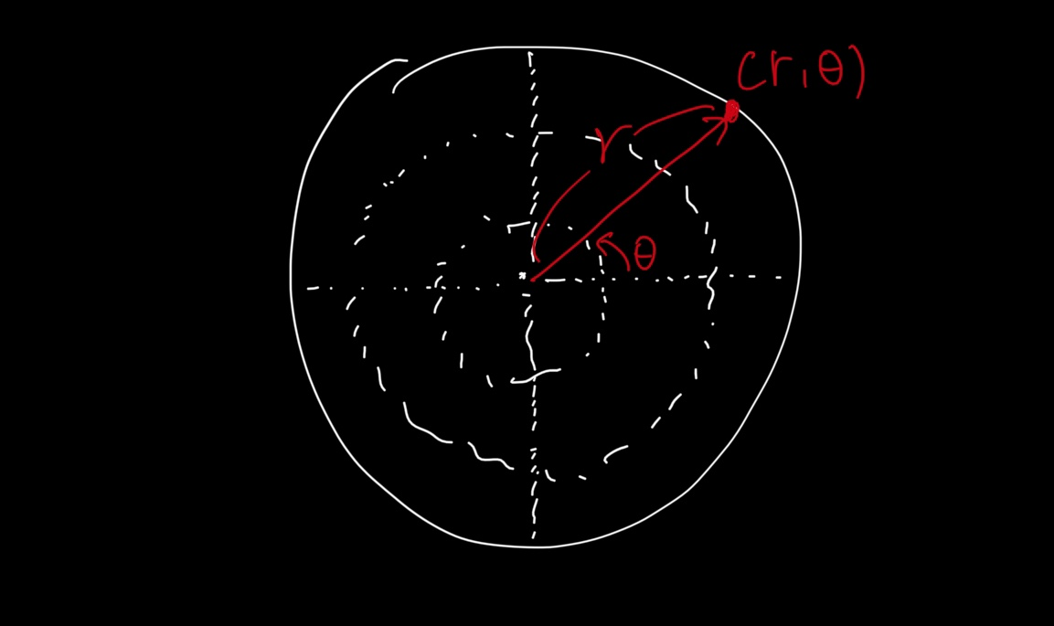 우리는 기본적으로 데카르트 좌표계를 많이 이용하는데, 사실 회전을 할 때마다 x 와 y 의 변화를 매번 계산하는 것은 매우 번거로운 일일 수 있다. 이 경우, 원점으로부터의 거리 r 과 θ 의 두 요소로 구성된 극좌표계(Polar coordinate system) 을 사용할 수 있다.