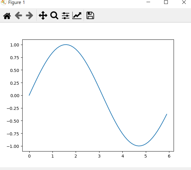 그래프를 그리려면 matplotlib의 pyplot모듈을 사용한다. sin()함수를 한 번 그려보자.