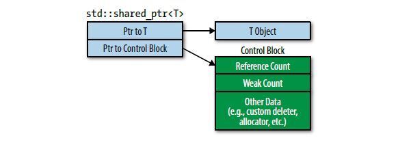 2. 대체로 std::shared_ptr 객체는 그 크기가 std::shared_ptr 객체의 두 배이며, 제어 블록에 관련된 추가 부담을 유발하며, 원자적 참조 횟수 조작을 요구한다.