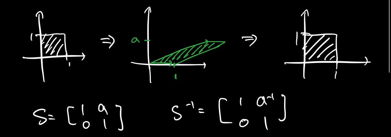 평행사변형 처럼 미끄러지게 생긴 전단 변환행렬의 역행렬은 다음과 같다.