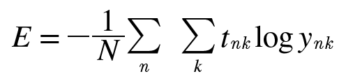 이때 데이터가 N개라면 tnk는 n번째 데이터의 k번째 값을 의미한다(y는 신경망의 출력, t는 정답 레이블이다).
