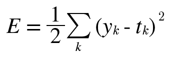 여기서 yk는 신경망의 출력(신경망의 추정값), tk은 정답 레이블, k는 데이터의 차원 수를 나타낸다.