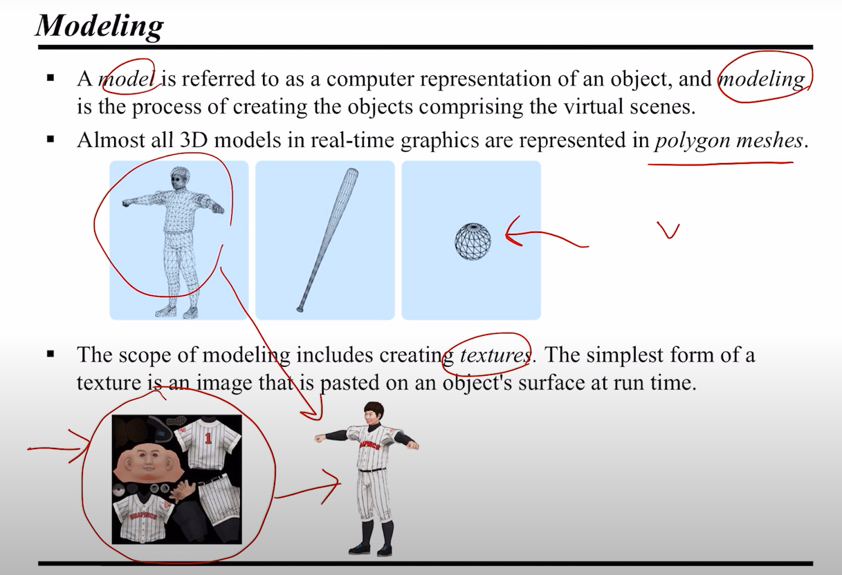 모델링은 텍스쳐를 포함하는데, 텍스쳐는 이미지의 속성을 의미한다고 생각해도 된다.