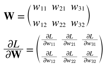 신경망 학습에서도 기울기를 구해야 한다. 여기서 말하는 기울기는 가중치 매개변수에 대한 손실 함수의 기울기이다. 예를 들어, 형상이 2X3, 가중치가 W, 손실 함수가 L인 신경망을 생각해 보자.