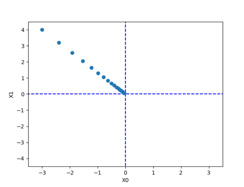 return x, np.array(x_history)실제로 이 코드를 이용해서 결과값을 확인해 보자. (아래 코드를 추가)