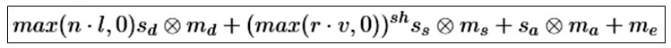 max(n ⋅ l, 0) 은 빛의 강도, 뒤의 식은 색상값을 결정한다. s 가 빛의 source, m 이 material 의 데이터이다.