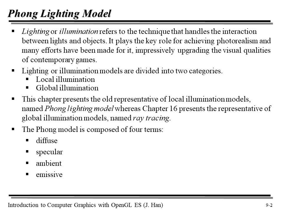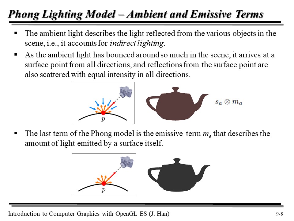[OpenGL ES] 9강 : 라이팅, 퐁 모델(Phong Model), 난반사(Diffuse), 정반사(Specular), 주변광(Ambient), 자체 발광(Emissive)