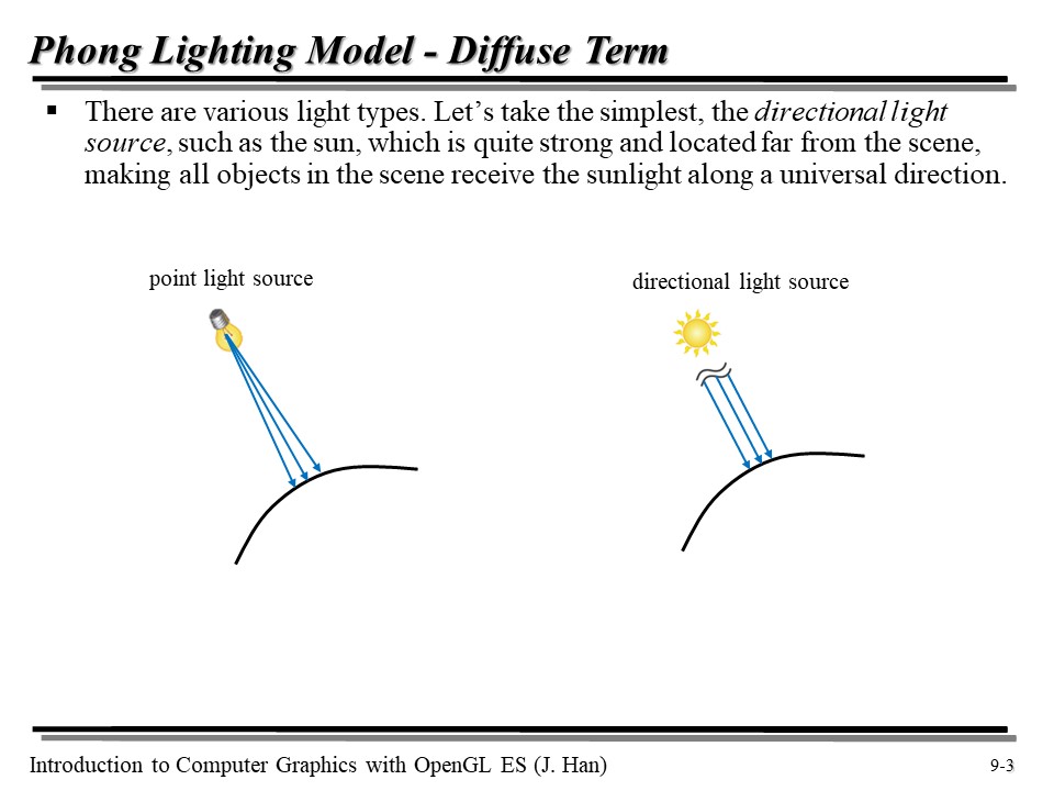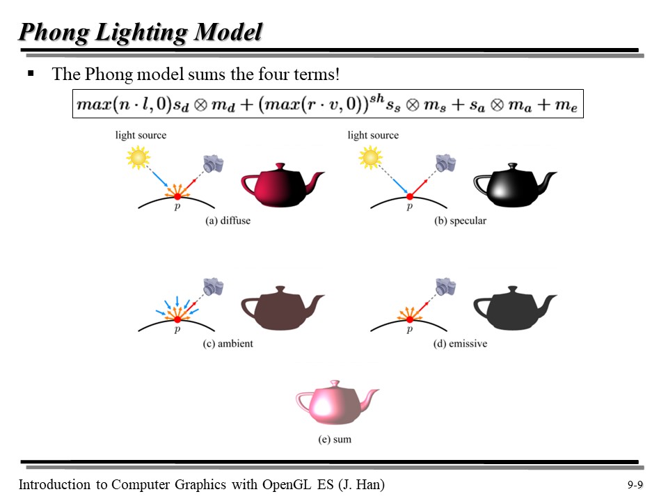 [OpenGL ES] 9강 : 라이팅, 퐁 모델(Phong Model), 난반사(Diffuse), 정반사(Specular), 주변광(Ambient), 자체 발광(Emissive) 본문