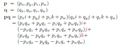 또한, 사원수를 Conjugate (켤레) 복소수를 취해서 표현할 수도 있는데... pq 에 대해 켤레 복소수를 취하면 q*p* 가 된다.