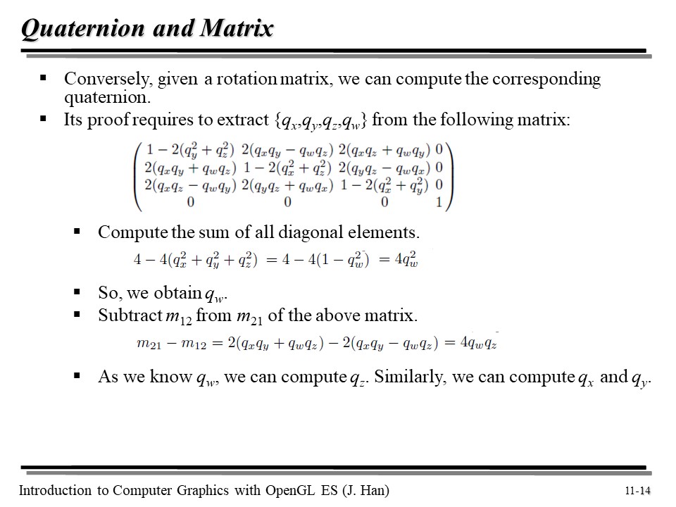 심지어, 회전 행렬을 통해 쿼터니언을 뽑아낼 수도 있다. 위 부분은 참고로만 기억해 두자 😮