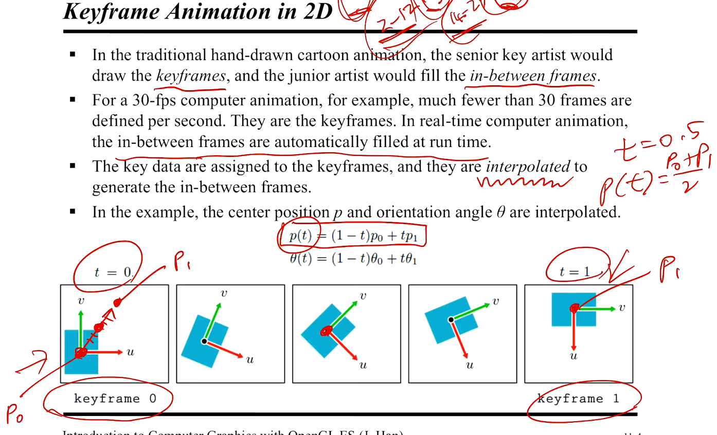 위의 그림을 보자. 키프레임 0과 키프레임 1에서의 두 점이 첫째 줄 과 둘째 줄에 잘 나와 있다.