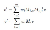 이 녀석이 v5 에 적용되어 v5' 가 만들어 지는데... 여기에 M(5, p) 를 곱해서, forearm 의 Bone Space 에 정의된 좌표를 upperarm 의 Bone Space 에서의 좌표로 변환해 줄 수 있다.