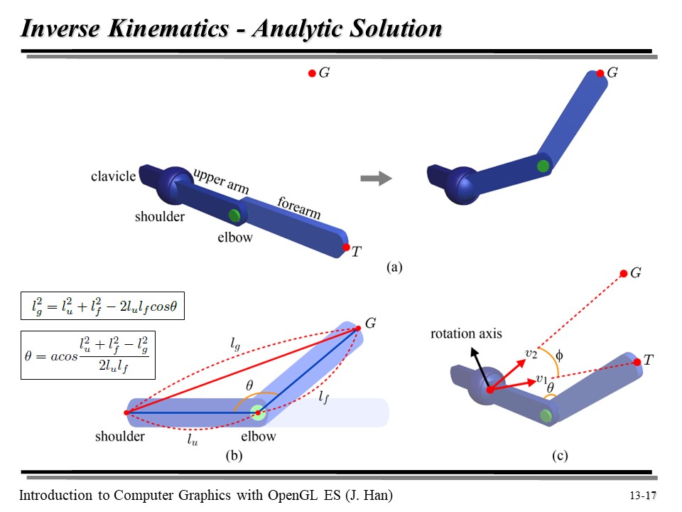 실제로는, CCD(Cyclic Coordinate Descent) 방식을 이용해서 iterative 하게 각도를 계산한다.