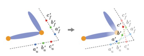 각 뼈에서의 상대적 위치를 왼쪽 그림과 같이 쓴 다음, 가중치를 이용해 보간하면 적절한 점 a', b', c' 가 나온다! 😁