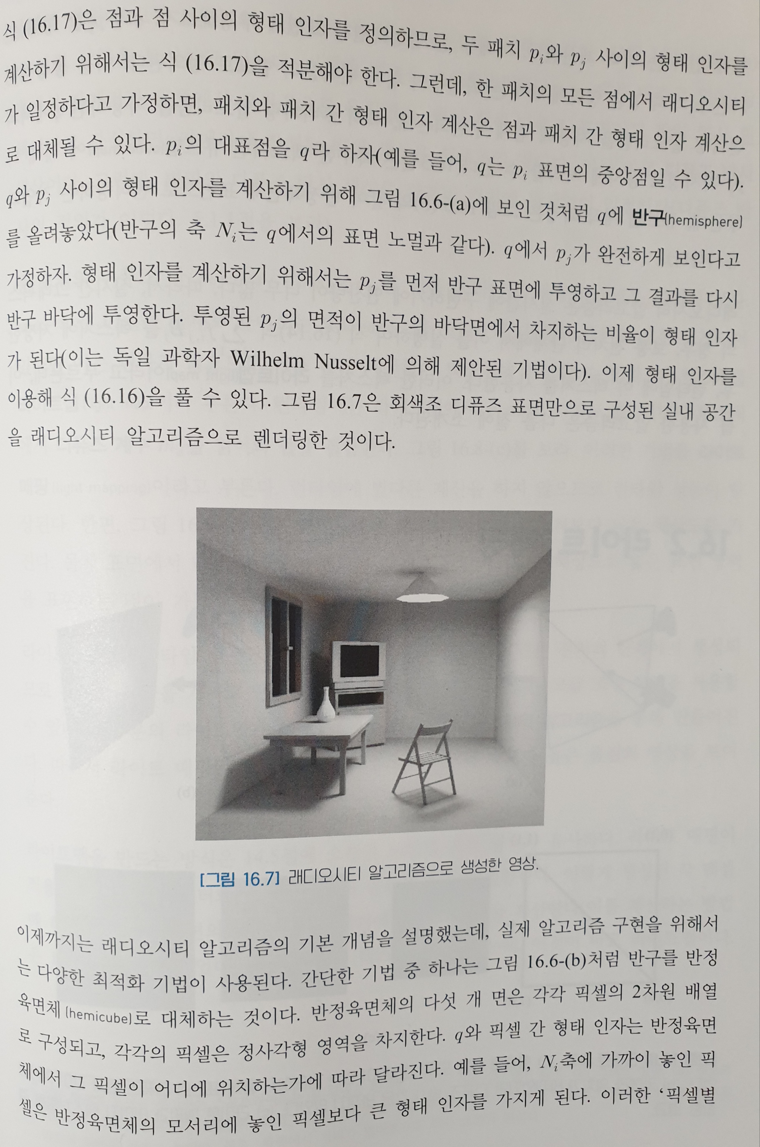 여기서 "도대체 irradiance 가 무엇이지" 라는 의문이 생길텐데... 그걸 알려면 래디오시티(Radiosity) 알고리즘(위키피디아는 라디오서티 라고 번역해놨다;) 를 이해해햐 한다. Radiosity 는, 각 점과 점 사이의 (혹은 메시 조각과 메시 조각 사이) 빛의 반사 정도를 측정한 값이라고 봐도 무방하다.