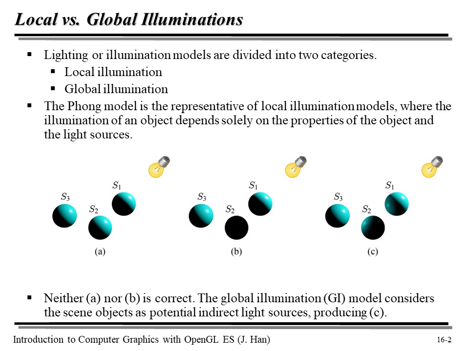 Lighting 과 Illumination 은 두 가지로 나눌 수 있다. 바로 Local 과 Global 이다.