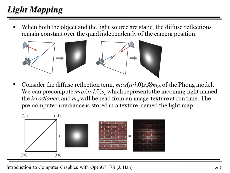 즉, irradiance 는 미리 계산이 가능하며, 이것은 light map 이라는 이름으로 저장된다.