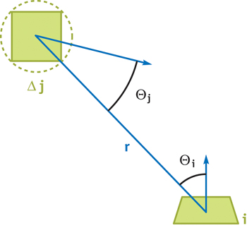 일단, 표면 i 와 j 가 있다고 하자. 이때, 우리는 i 에서 반사된 빛이 j 로 들어갈 때, 얼마나 들어갈지를 계산할 것이다(j -> i 의 경우도 계산할 것임).
