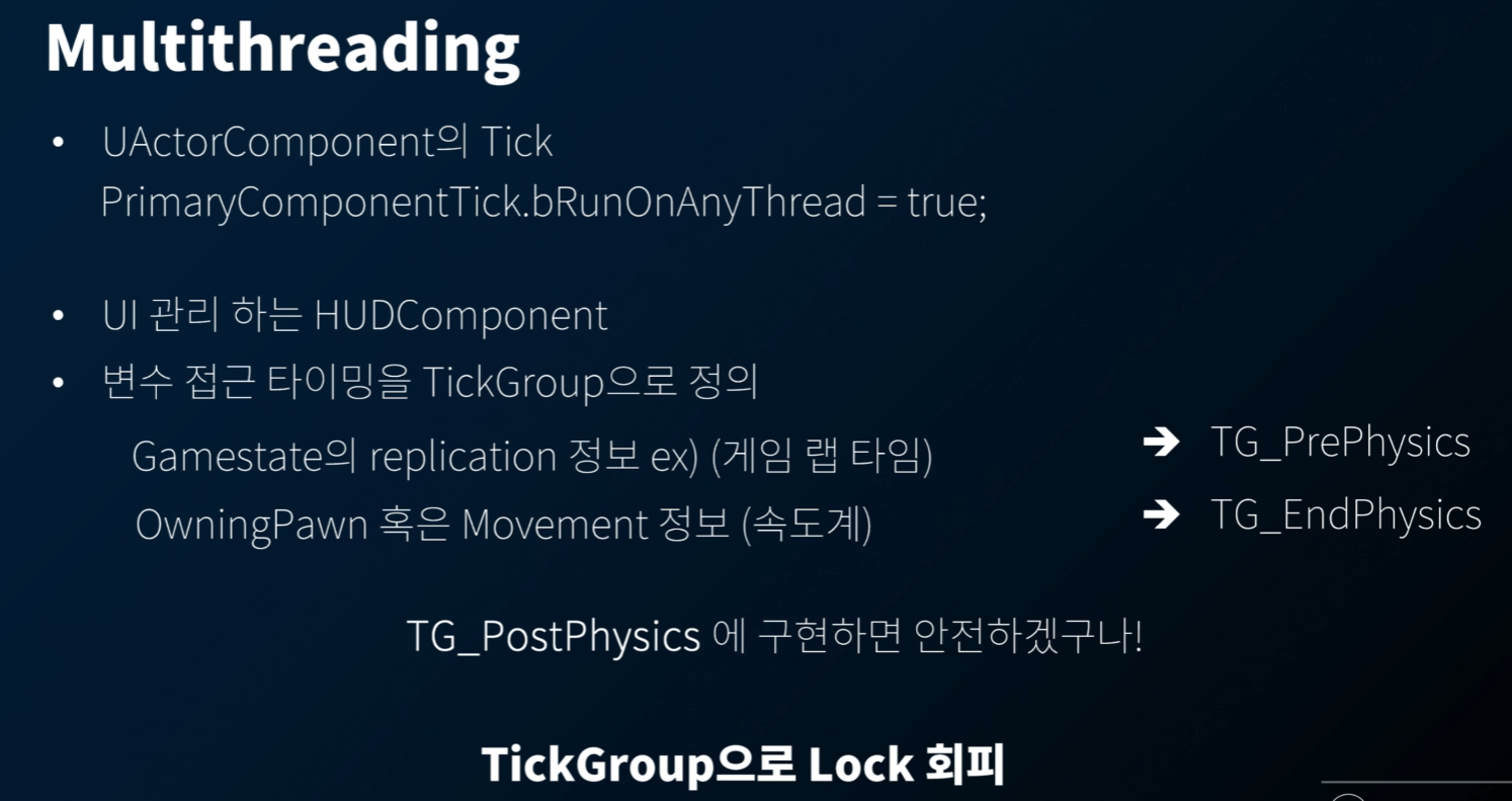 틱 그룹이 다르면 Parallel Update 를 블락할 수 있어서... (멀티 쓰레딩이 안됨) 해당 내용을 확인해야 한다.