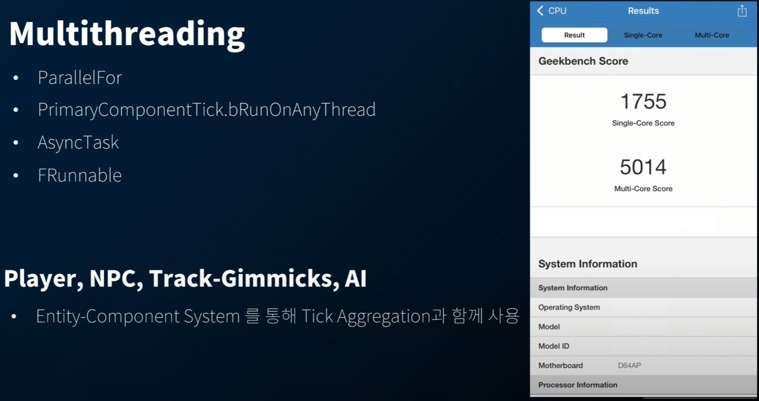 머신 러닝을 통해 다음 캐릭터의 움직임을 예측하도록 학습시키고 있는데... 이때 이를 병렬 처리하여 메인 쓰레드에 부하를 줄였다고 한다.