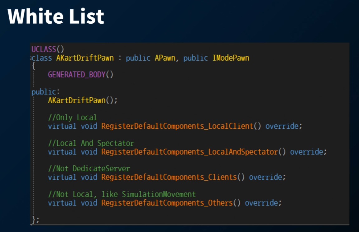 카트라이더에서는, 폰에 CreateDefaultSubobject 를 마구 사용하지 않고, 액터의 Role 에 따라, 각각 다른 액터 컴포넌트를 갖도록 구현하였다.