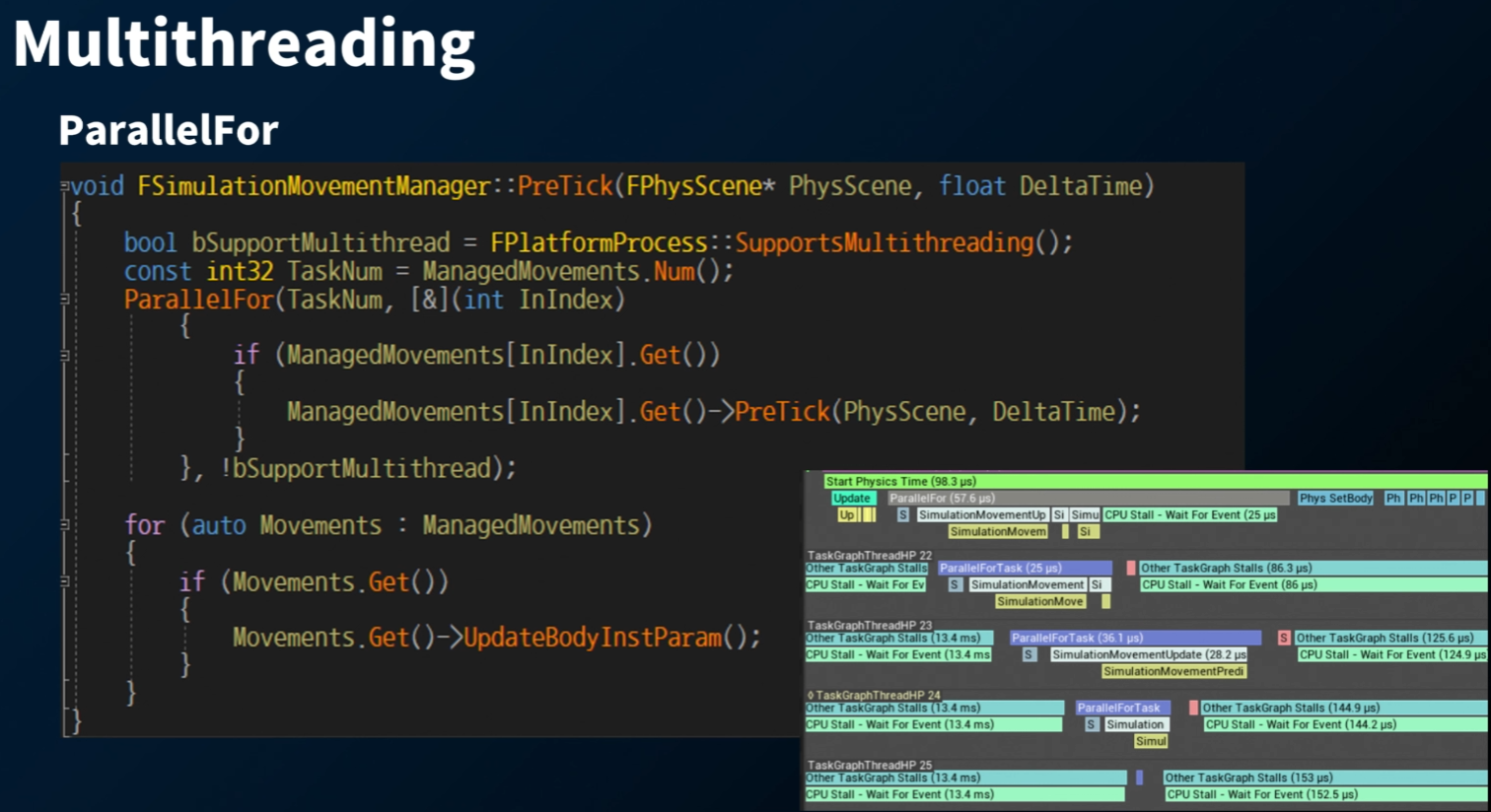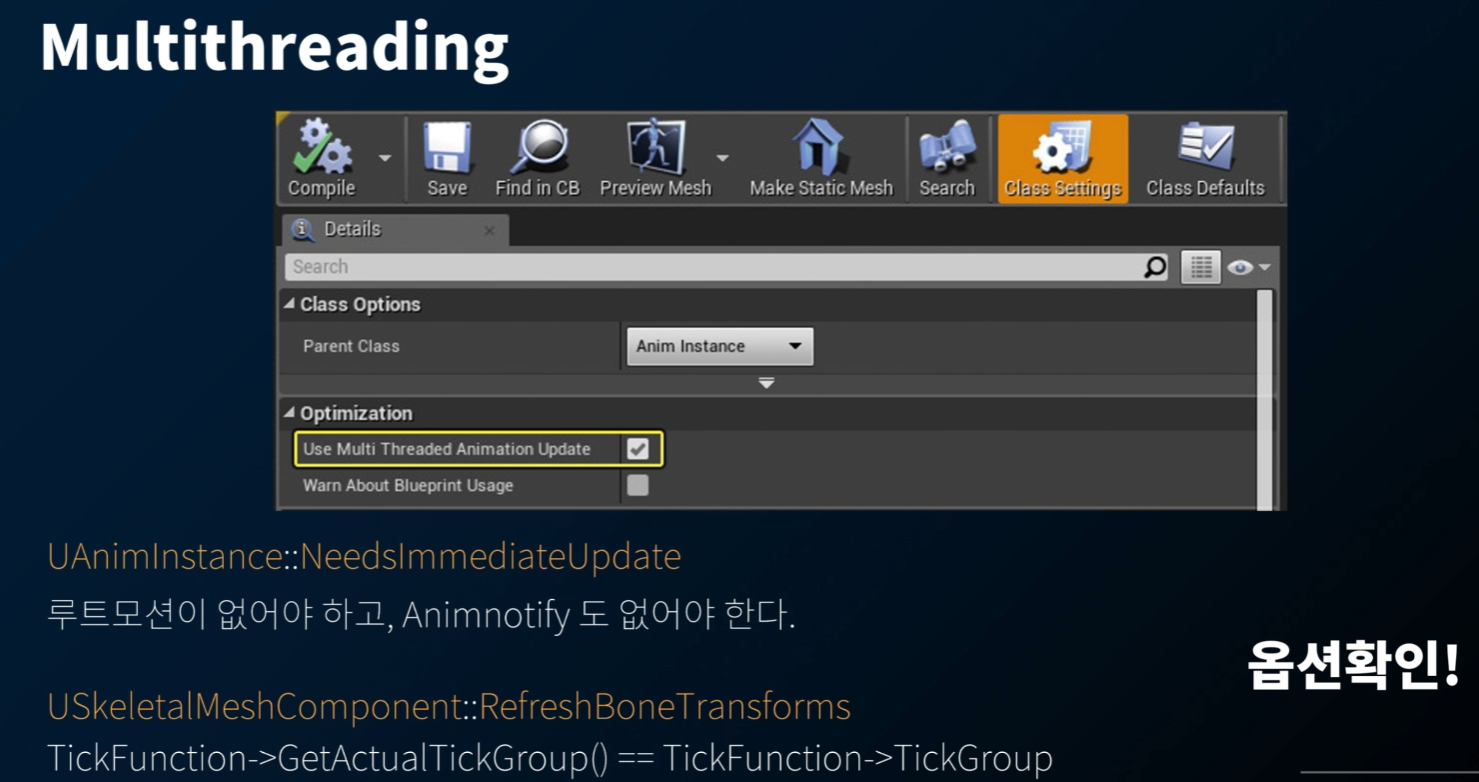 틱 그룹이 다르면 Parallel Update 를 블락할 수 있어서... (멀티 쓰레딩이 안됨) 해당 내용을 확인해야 한다.