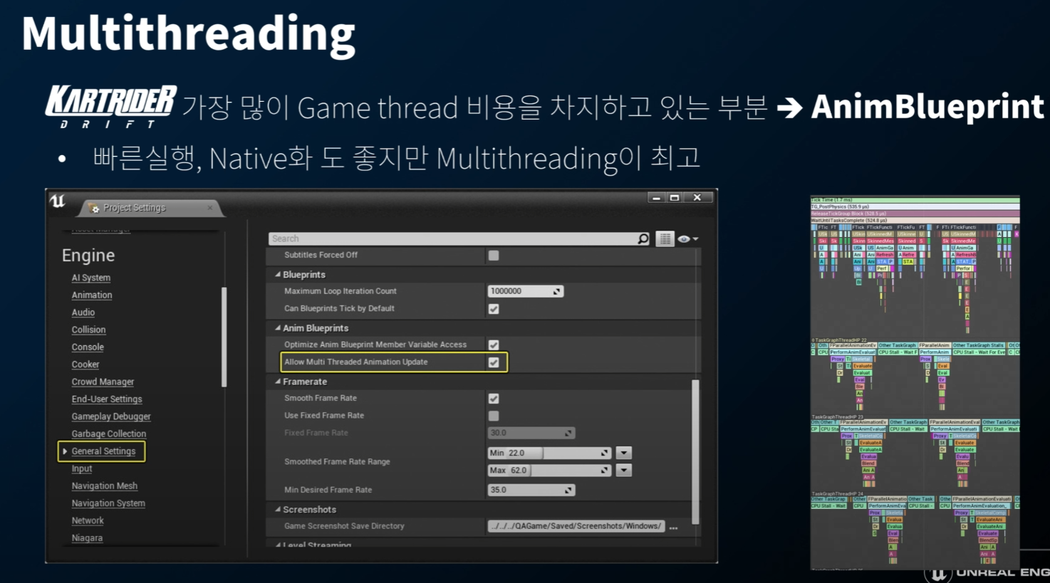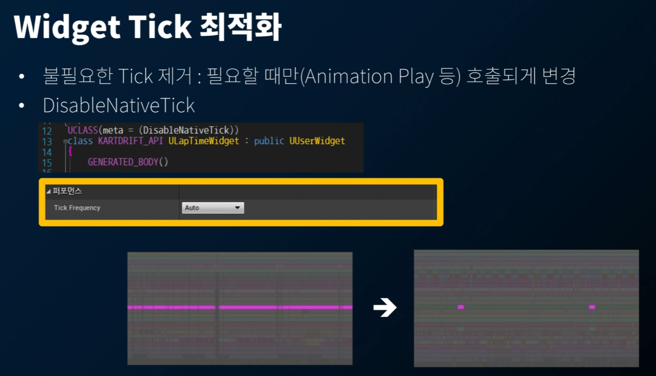 Hitching 이 언제 발생하는지 파악하여 어떤 부분에서 병목현상이 발생하는지 파악해야 한다. 카트라이더의 경우 GameThread 에서 병목이 발생하여 이를 집중적으로 다루었다고 함.