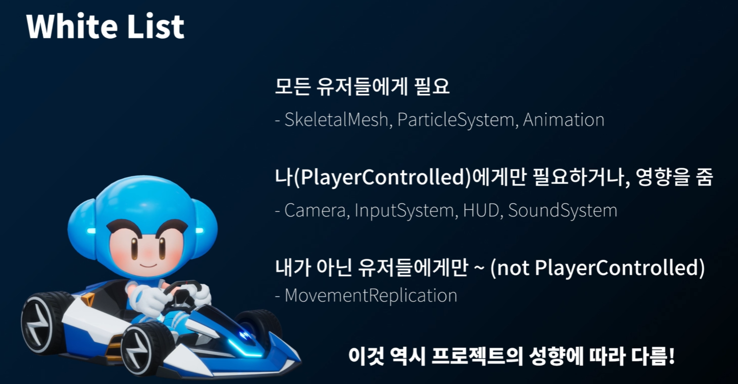 카트라이더에서는, 폰에 CreateDefaultSubobject 를 마구 사용하지 않고, 액터의 Role 에 따라, 각각 다른 액터 컴포넌트를 갖도록 구현하였다.