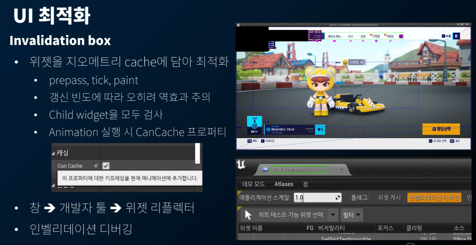 Invalidation box 에 담긴 위젯은, prepass 시 paint 되지 않는다. 이에 슬레이트의 렌더링 속도를 올려줄 수 있다고 한다. 자손의 모든 위젯을 검사하므로, Depth 에 따라 잘 감싸주어야 한다.
