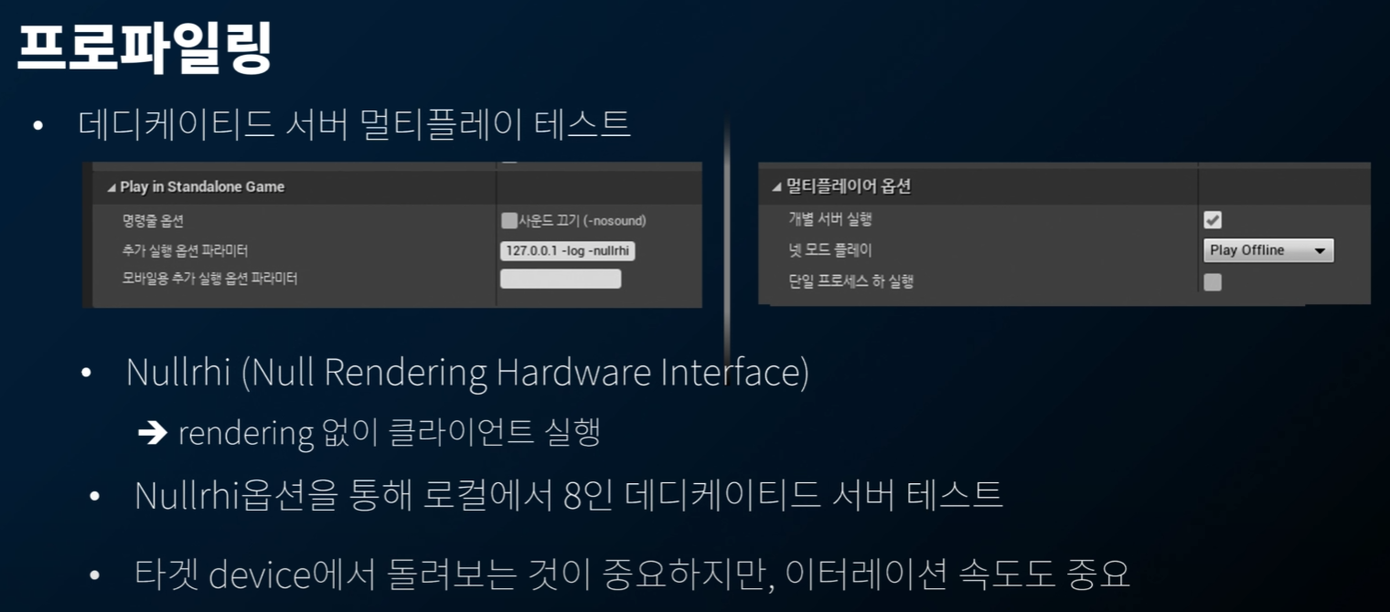 Nullrhi 를 이용하면 렌더링 부하 없이 병목을 테스트해볼 수 있다! 😄 Tick 규모가 클 수록, 효과가 더욱 클 것이다!