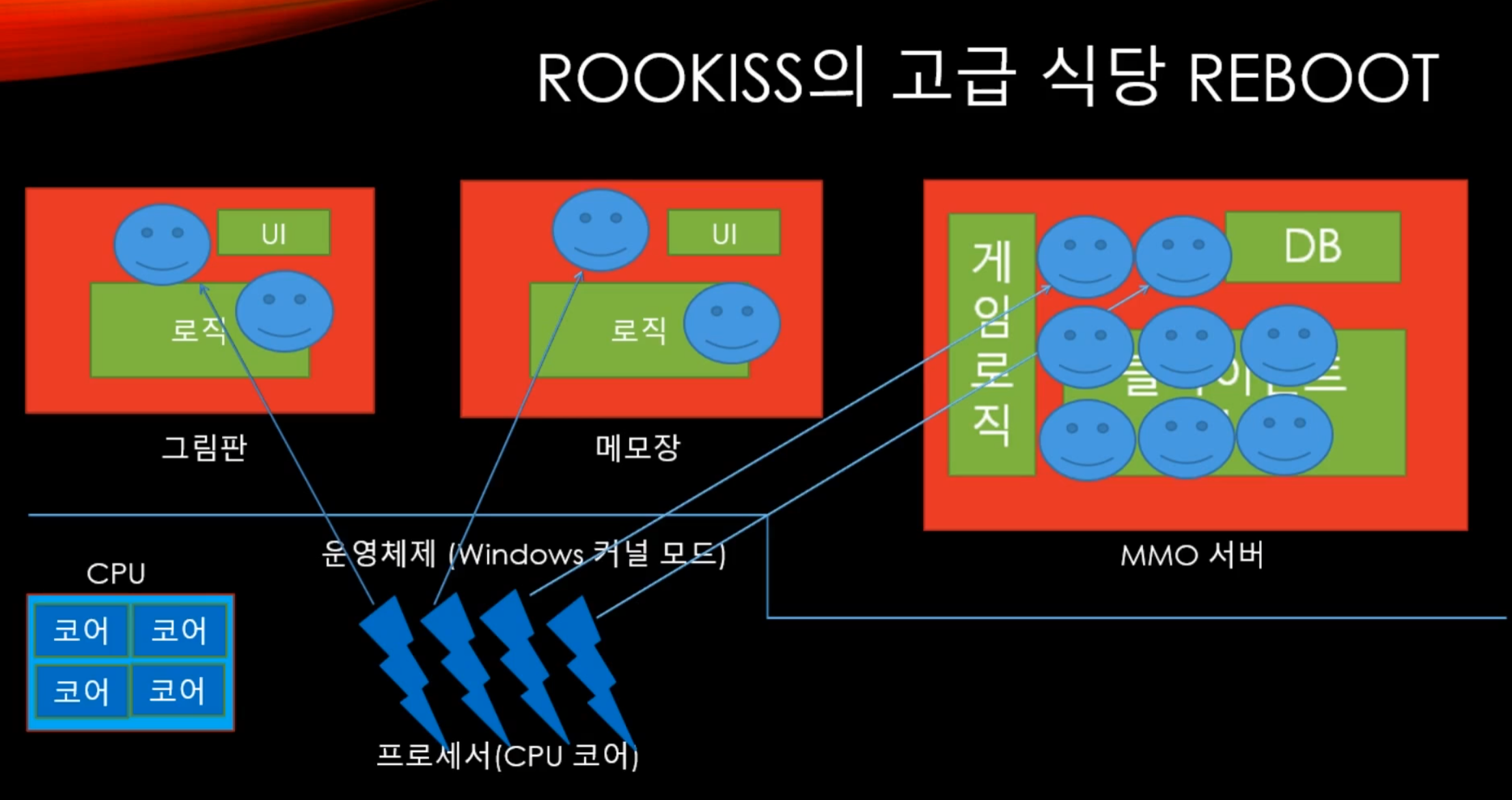 멀티쓰레드 프로그래밍은 식당을 운영하는 것과 비슷하다. 테이블을 프로그램, 직원을 쓰레드, 영혼을 CPU 코어라고 생각하자.