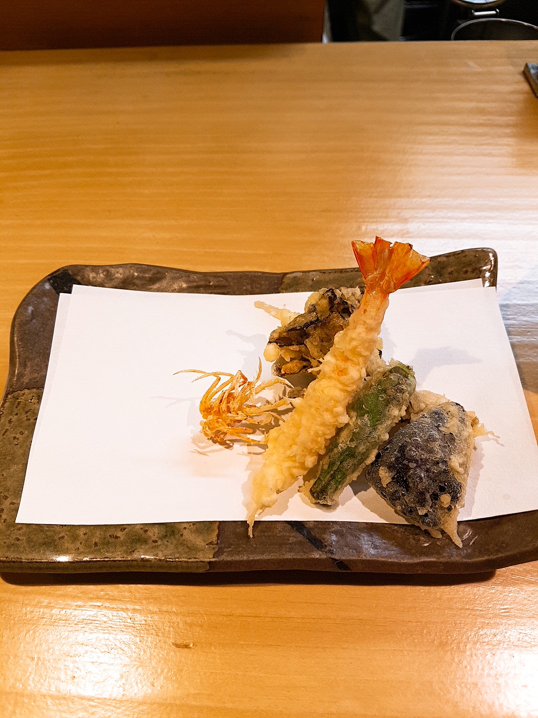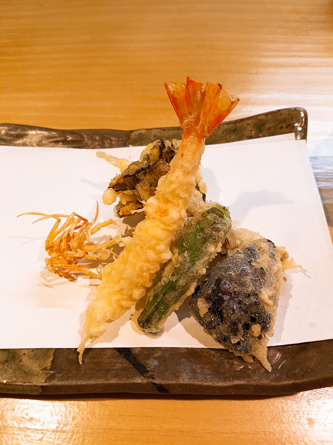 튀김이 먼저 나왔다. 장어, 작은 게, 각종 야채. 튀김은 기름지지 않고 맛있었다.