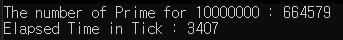 cout << "The number of Prime for " << MAX_NUMBER << " : " << primeCount << endl;