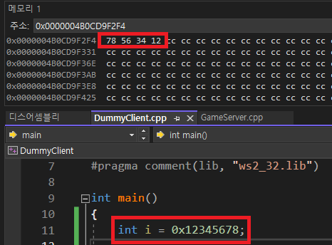 디버그 > 창 > 메모리를 킨 다음, 주소 검색에서 &i 를 쳐 보면, i 의 값이 위처럼 반대로 잡혀 있는 것을 알 수 있다. 역시.. ㅡMSVC 도 Little-Endian 이었나? 아니, 보통 OS 별로 나뉘니 윈도우가 Little-Endian 일지도.
