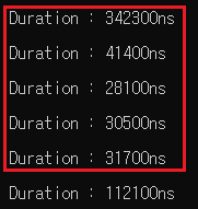 cout << "\n Duration : " << duration.count() << "ns" << endl;