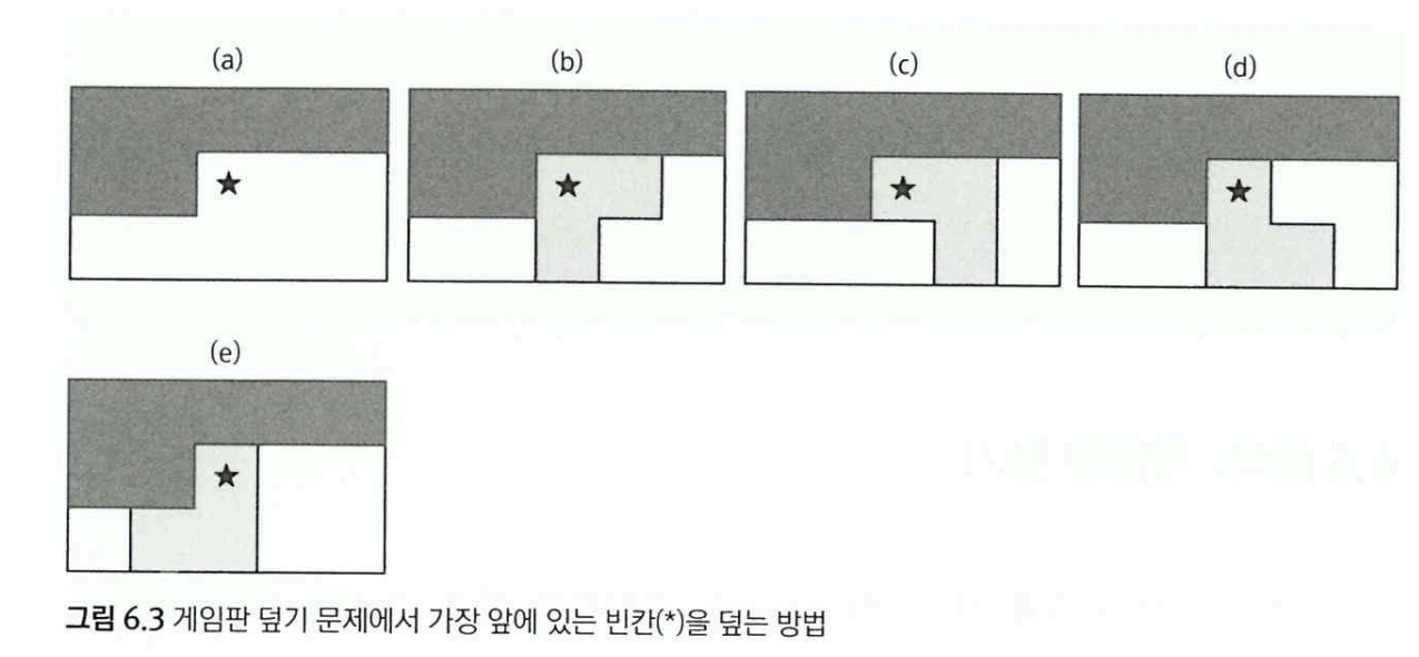 책에서는 위와 같이 덮는 방법 4개를 제시한다. 우리는 이 모델을 바탕으로 배열을 만들어 덮는 가짓수를 순회하도록 만들 것이다.