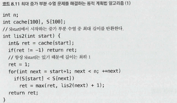 [종만북 문제] 최대 증가 부분 수열 (문제 ID : LIS, 난이도 : 하) 본문