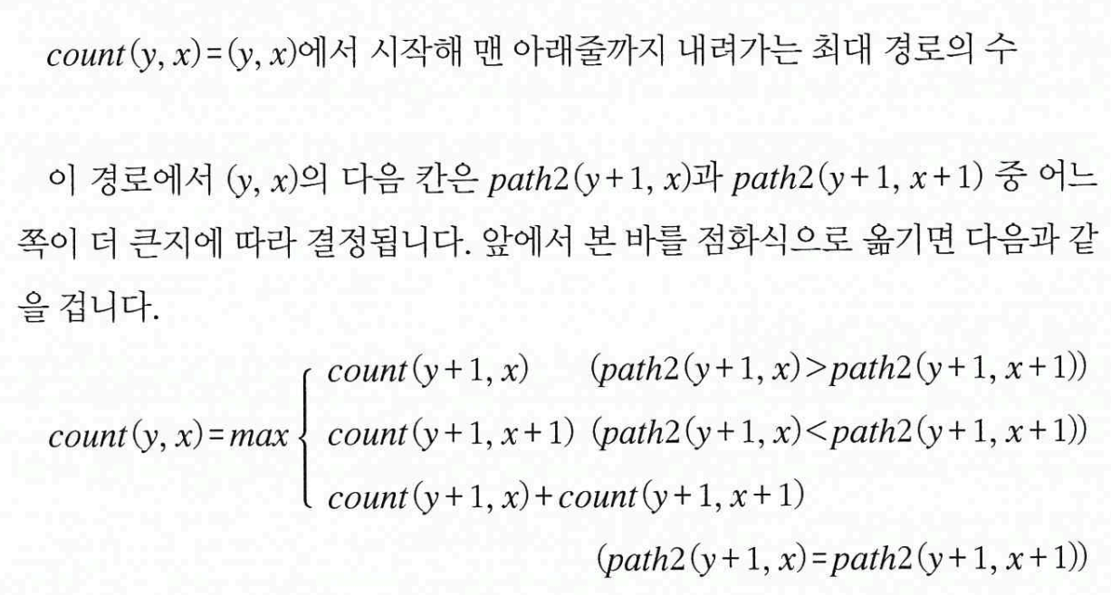 코드가 조금 장황해졌는데... 책에서는 아래와 같이 점화식을 세우고,