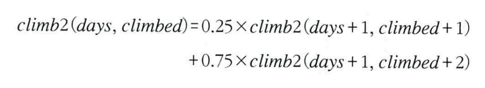ret = 0.75 * calc(days - 1, dist - 2) + 0.25 * calc(days - 1, dist - 1);