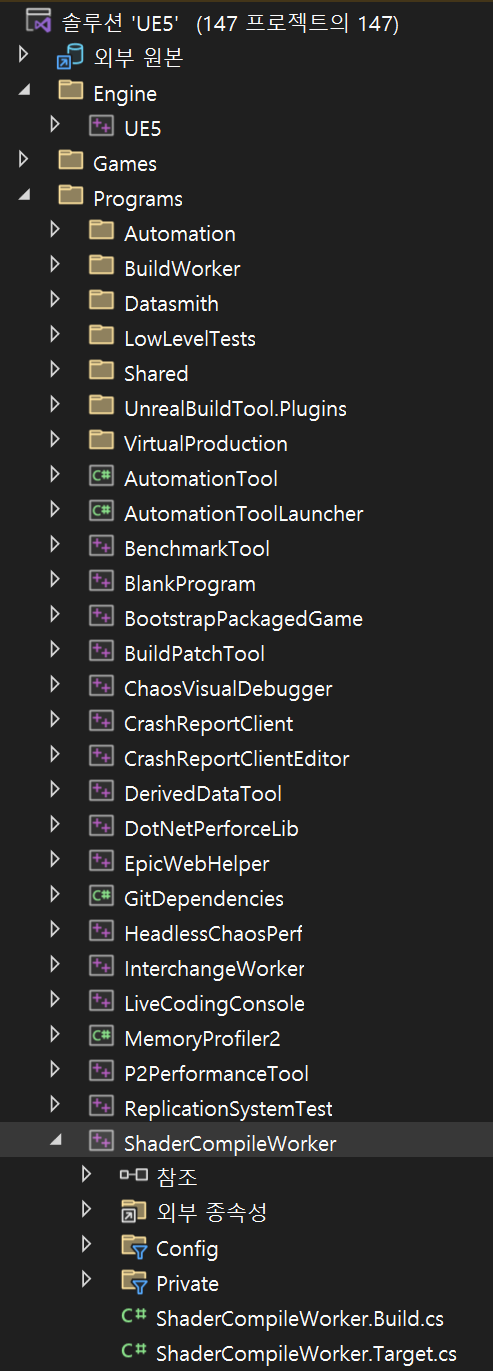 2. Solution > Programs 에서 ShaderCompileWorker 빌드