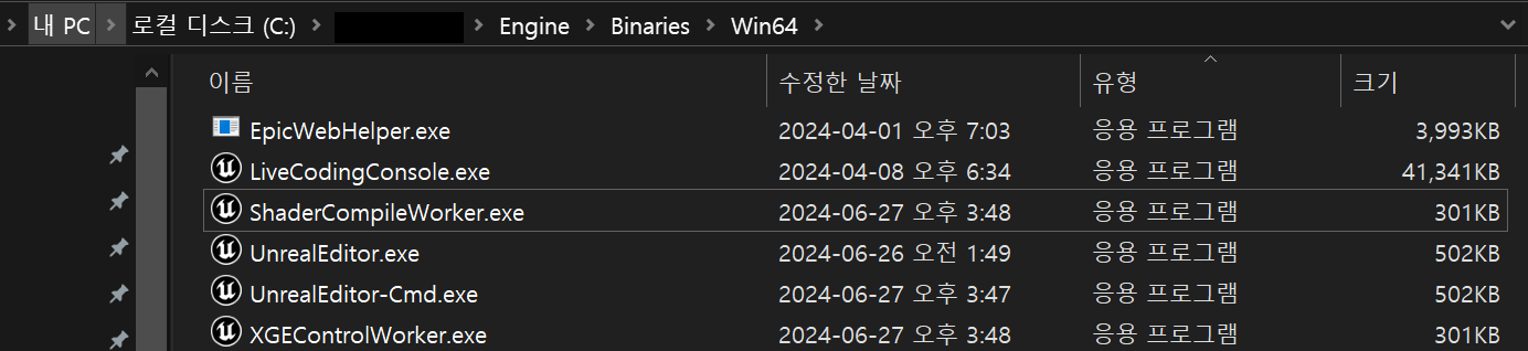 1. Engine\Binaries\Win64 에서 ShaderCompileWorker.exe 실행