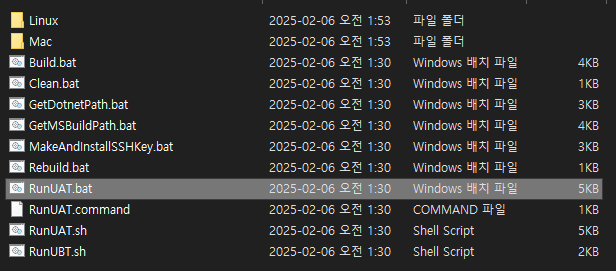 [소스 빌드 언리얼 설치 경로]\Engine\Build\BatchFiles\RunUAT.bat