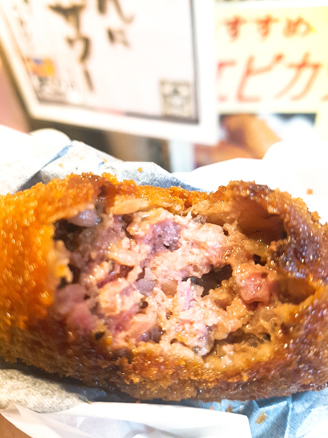 니쿠노 오오야마에서 파는 멘치가스(고기 고로케)들은 전부 괜찮지만, 맨 왼쪽의 400엔짜리 와규 멘치가스는 꼭 먹어보길 바란다! 비쌀수록 맛있는건 어느 정도 사실인 것 같다 ㅋㅋ