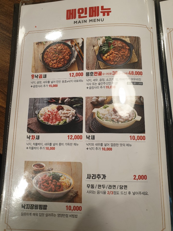 이것저것 많은데, 사실 낙곱새밖에 시킬 생각이 안든다ㅋㅋ