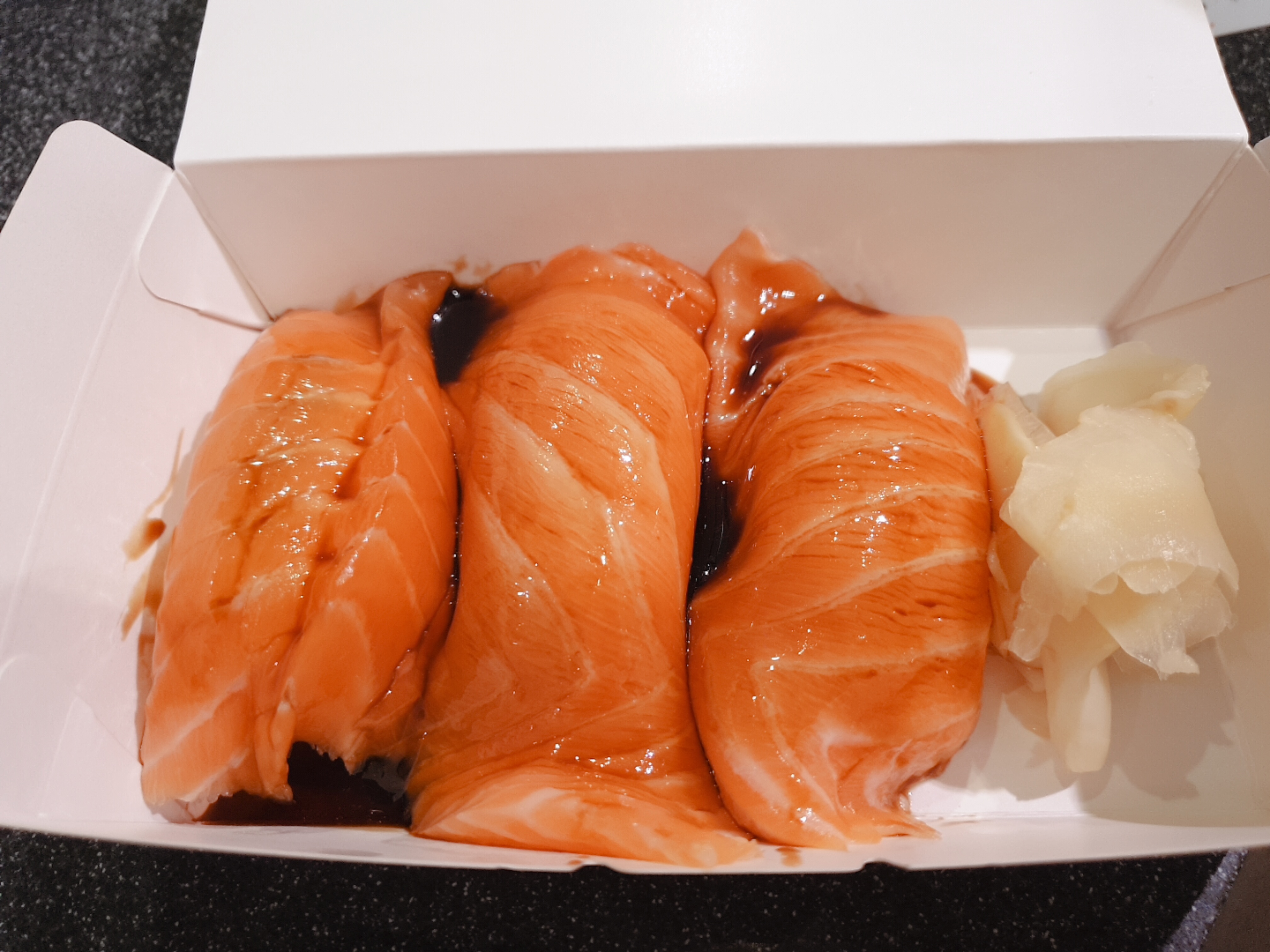가격은 9000원이고, 큼지막한 연어초밥 세 놈이 나온다.