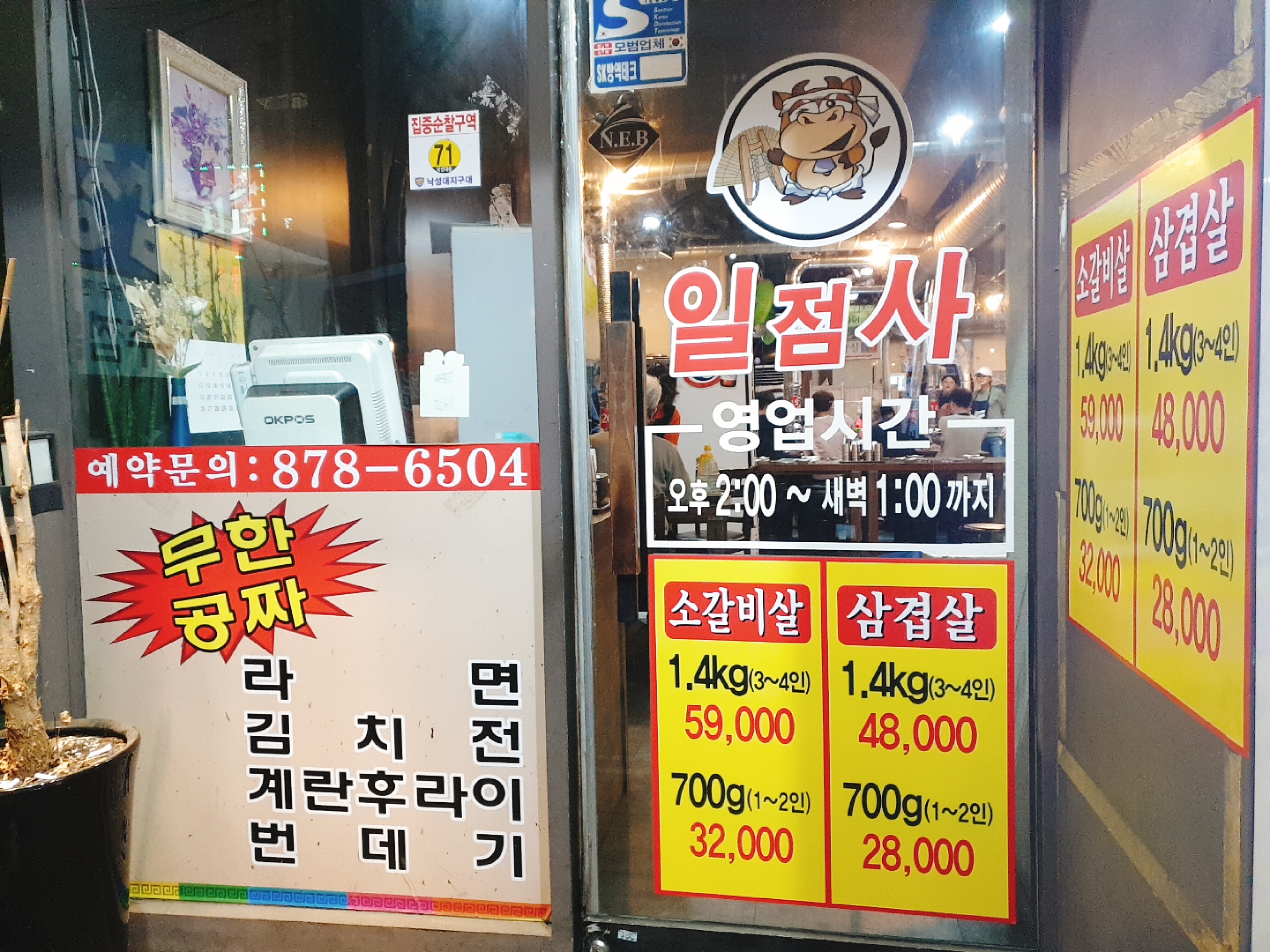 소갈비살이 1.4키로에 59000원이다! 라면, 김치전, 계란은 무한이다ㅋㅋ