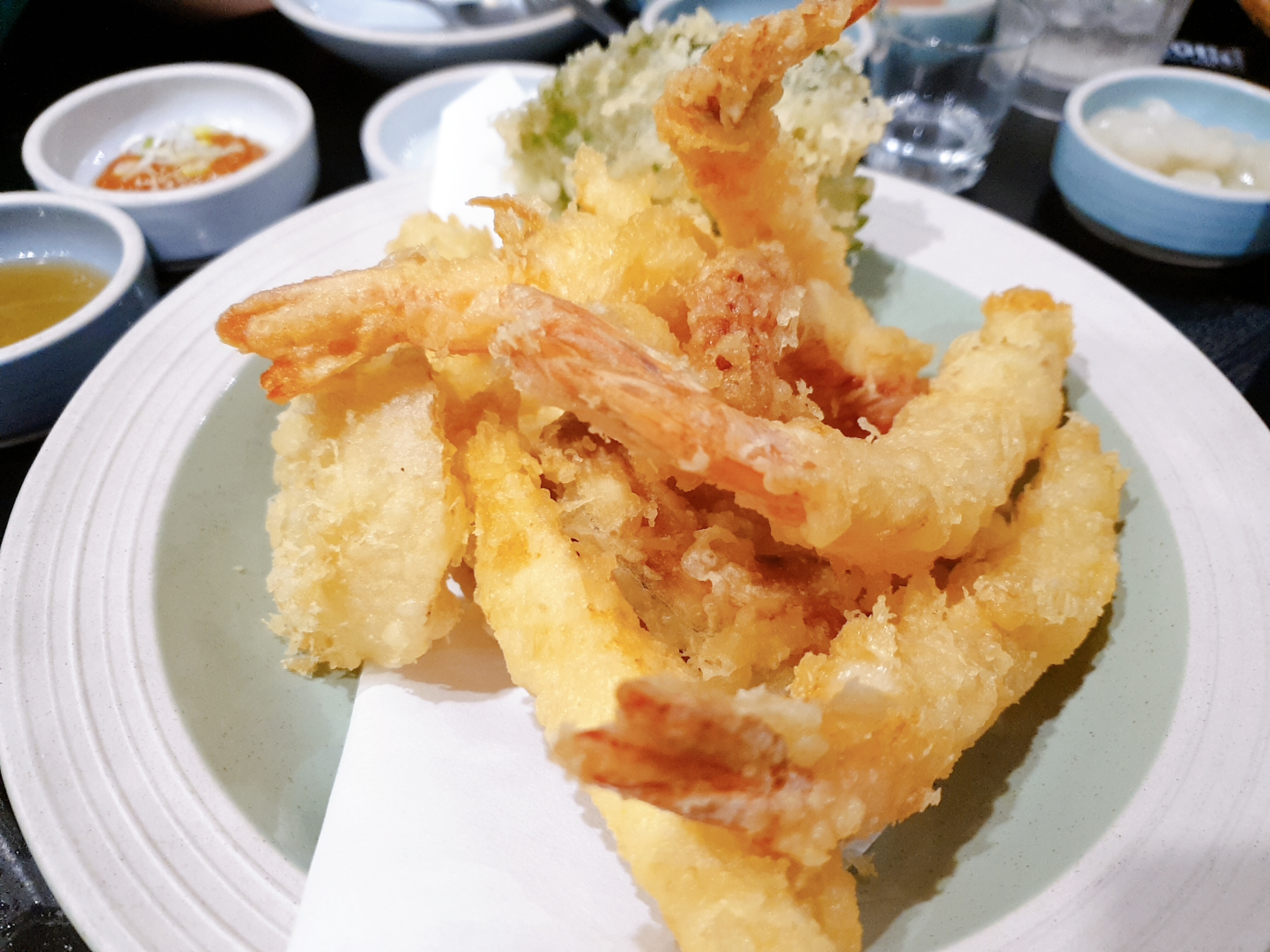튀김ㅎㅎ 순삭. 새우, 오징어, 호박, 깻잎 튀김이 나왔다!