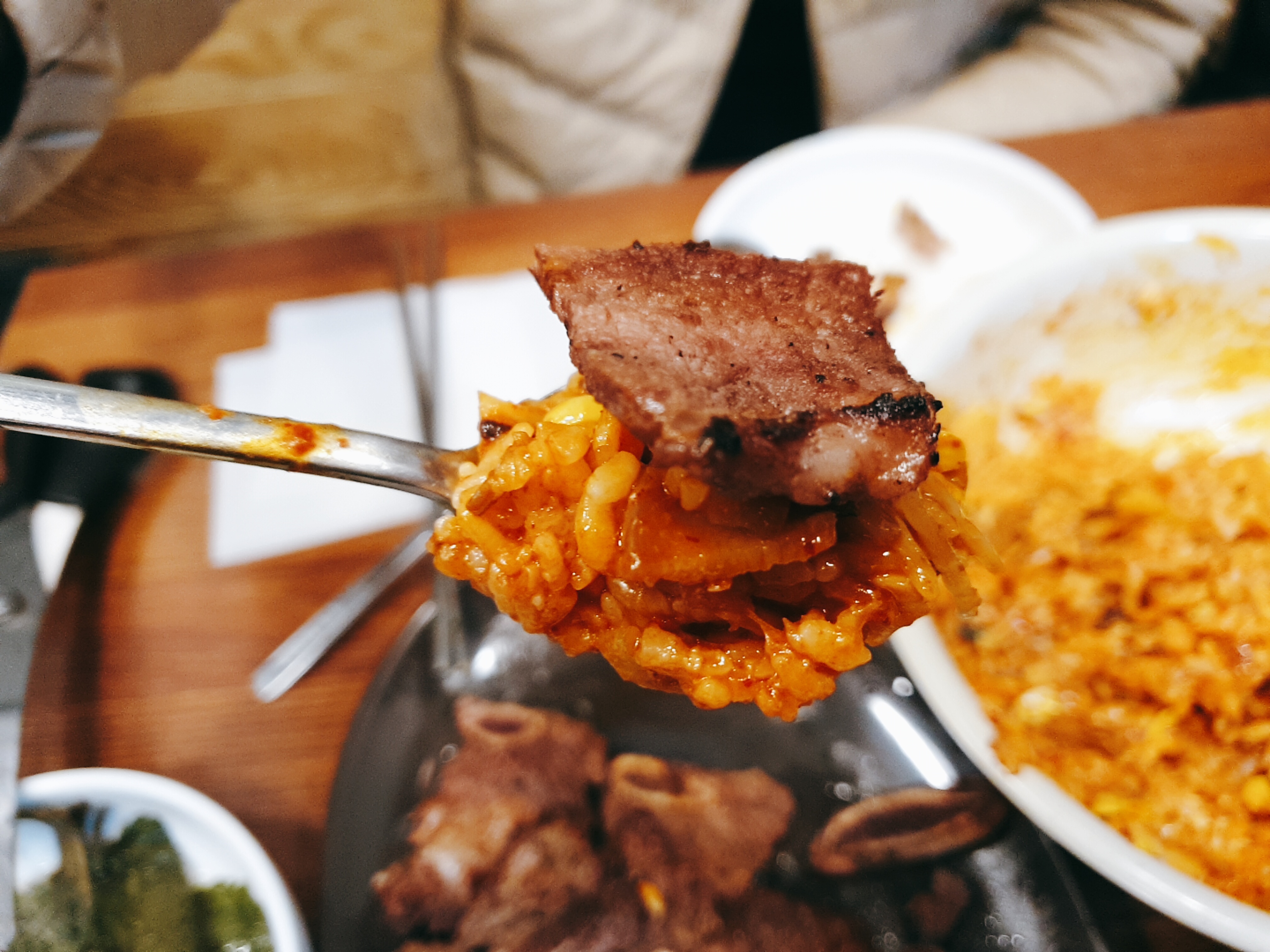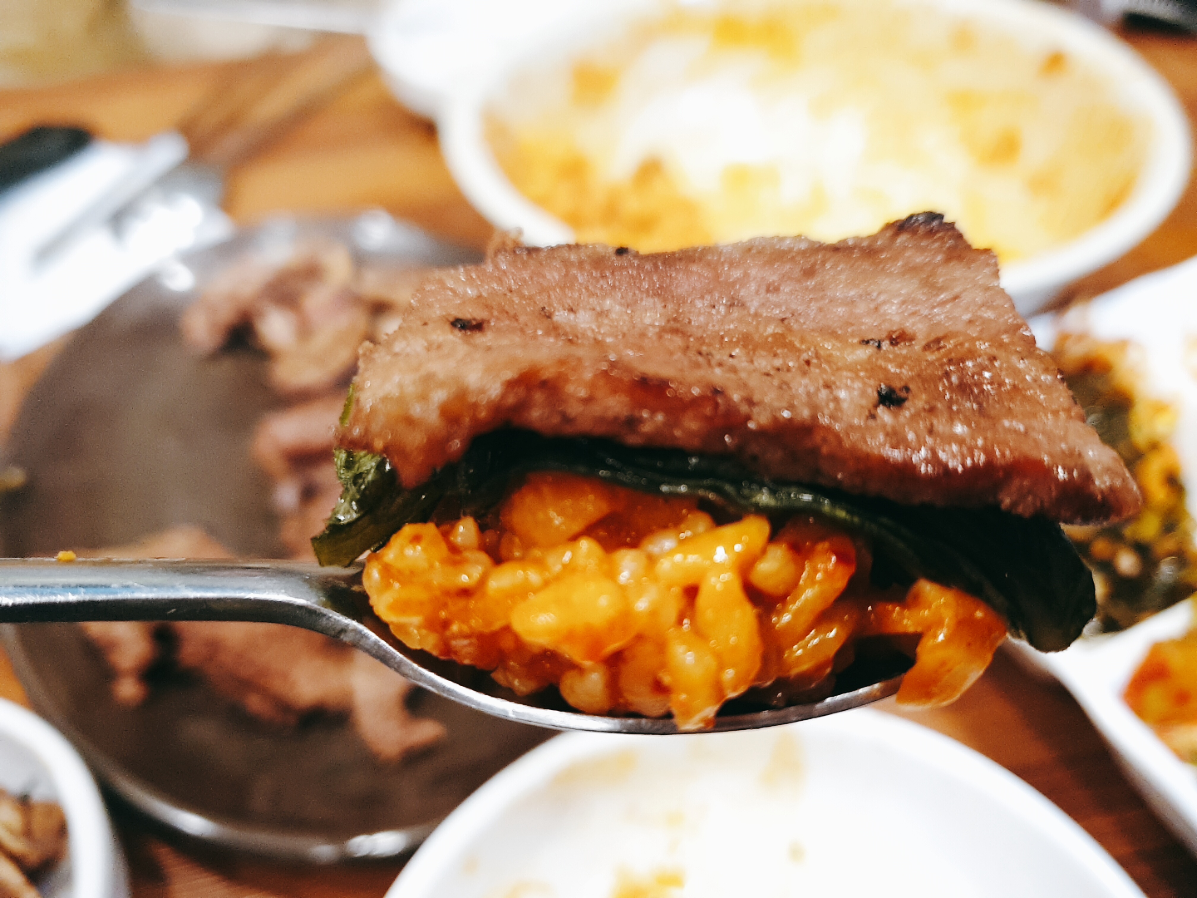 밥에 고기 한점 올리면 크~