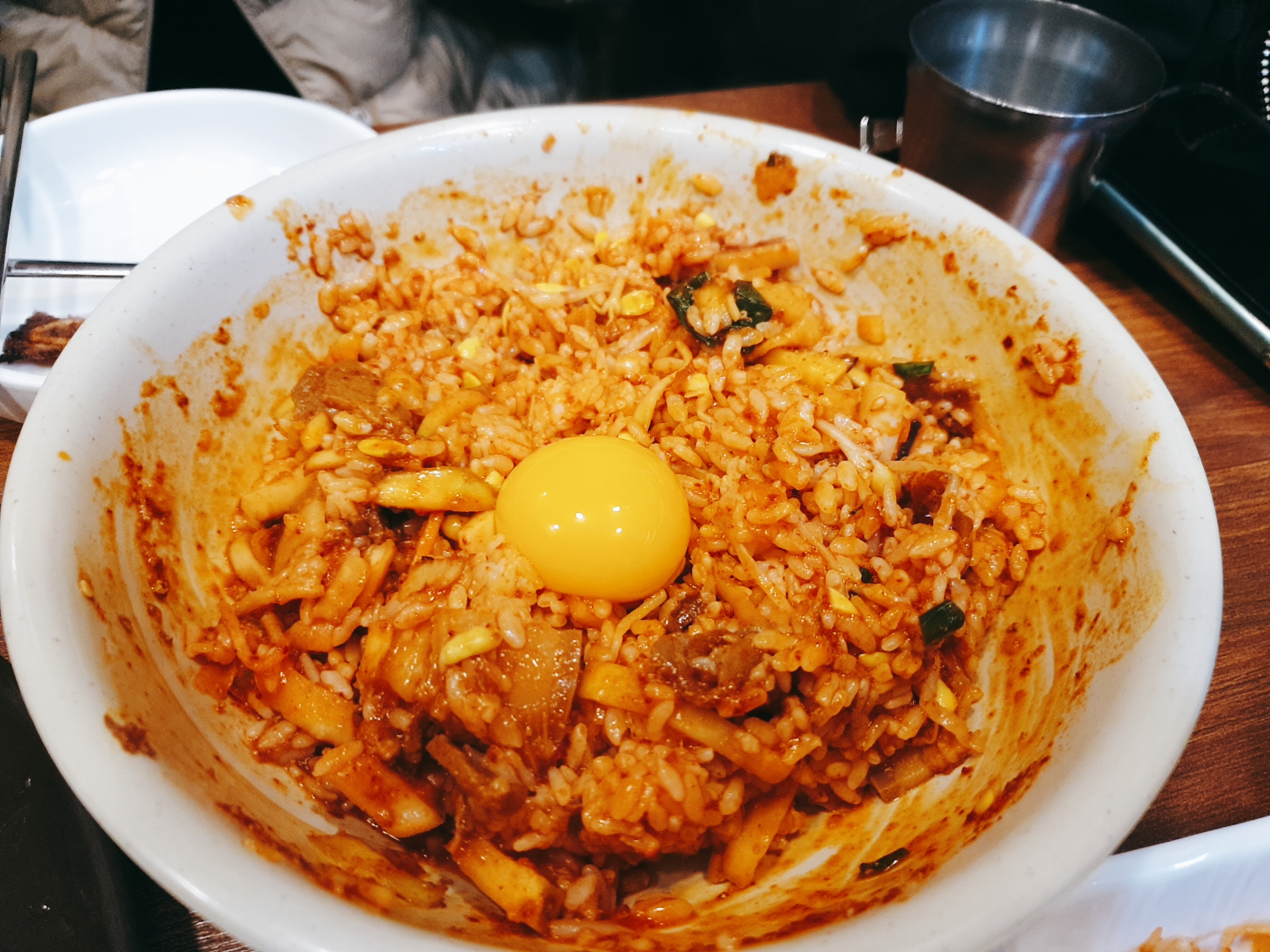 계란을 톡 터트려 비벼 먹으면 된다!
